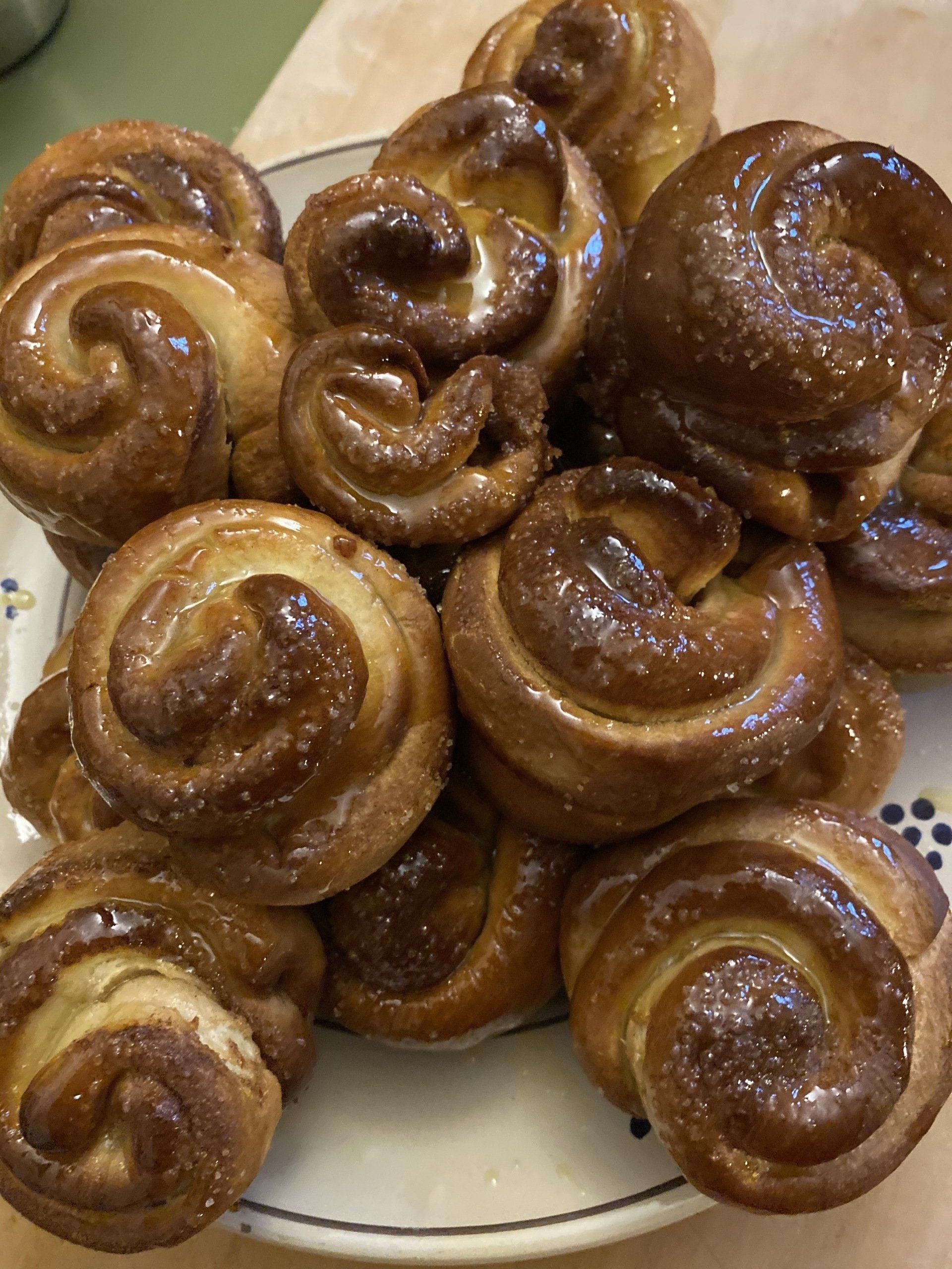 Für die Gewürz-Zampanos der großartigen Waldviertler Firma Sonnentor durfte ich mir kürzlich ein paar Gedanken rund ums Backen mit Blüten & Gewürzen machen. Was gibt es an Klassikern oder neuen Kombinationen, warum braucht es überhaupt Gewürze im Brot und wie mischt sie am besten in den Teig? Wer den Text dazu nachlesen will: Hier geht's zum Blog-Beitrag auf der Sonnentor-Seite, und hier zum Brotback-Video , das dabei entstanden ist. Angefangen hat es eigentlich damit, dass ich auf der Suche war. Und zwar nach neuen Aromen, die - abgesehen von der klassischen Lieblingsmischung aus Fenchel, Kümmel Koriander - neue Vielfalt ins Brot bringen. Was passt etwa besonders gut zu Dinkel? Oder wie lässt sich den Geschmack von Emmer oder Einkorn dezent unterstreichen? Dabei sind echt spannende neue Kombis herausgekommen, etwa Kurkuma-Muskat-Kardamom zu meinem heiß geliebten Dinkel-Sauerteig-Brot (das Rezept verlinke ich unten). Oder auch eine Prise Gewürznelken für die sonst ausschließlich mit Zimtzucker gefüllten Reinkerln. Wer's selber versuchen will, dem kann ich nur empfehlen, nach Herzenslust und persönlichen Vorlieben zu probieren. Ganz nach dem Motto: Weil's Spaß macht und schmeckt :) Dass die Gewürze wie alle anderen Zutatane auch nur achtsam und anständig hergestellte Bio-Produkte sein sollten, ist sowieso klar. Und egal, ob es nun Eure Lieblings-Curry-Mischung ist, Chili-Flakes oder vielleicht etwas so aromatisches wie Rosmarin und Lavendel, hier noch ein Tipp zur Dosierung: Mit wenig Gewürz im Teig beginnen (ich hab bei der Gewürzblüten-Mischung mit 1 gestrichenen TL auf 500 g Mehl angefangen) und langsam bis zur perfekten Dosis steigern. Viel Spaß dabei und spice up your bread! Meine neuen Lieblinsgrezepte: Weizen-Roggen-Mischbrot klassisch Frühlingsbrot mit Sonnenkuss und für alle Süßen: Zuckerreinkerln einmal anders